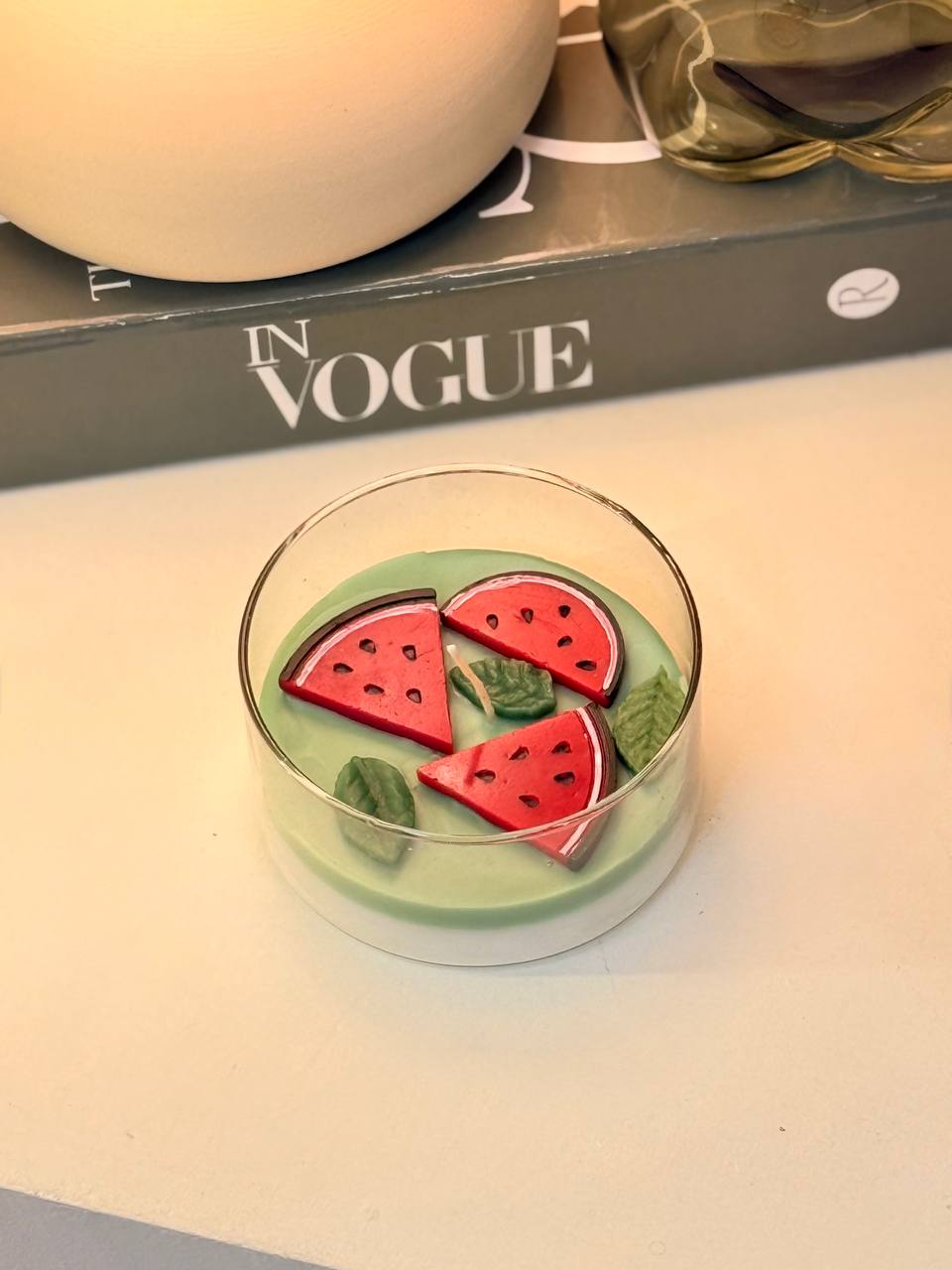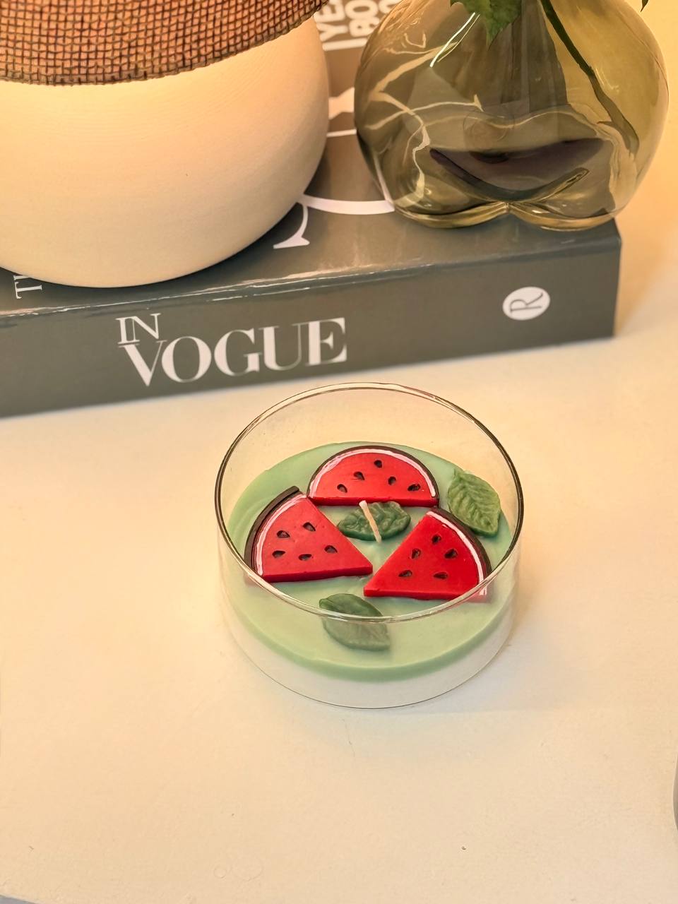 شمع شیشه ای یلدا هندوانه تخت 10865
